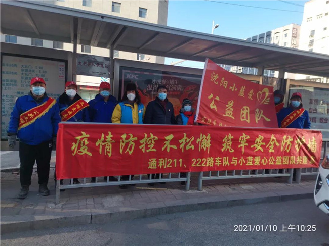 1月10日上午10時,沈陽小藍爰心公益團隊隊員來到通利公司211、222路大北門車隊,冒著嚴寒送來了抗疫物資300個口罩和兩箱消毒液,并和車隊共同開展了“疫情防控不松懈筑牢安全防護墻”主題宣傳活動,使廣大駕駛員感受到在抗擊疫情斗爭中,社會爰心團隊對公交車隊的支持與關愛。
