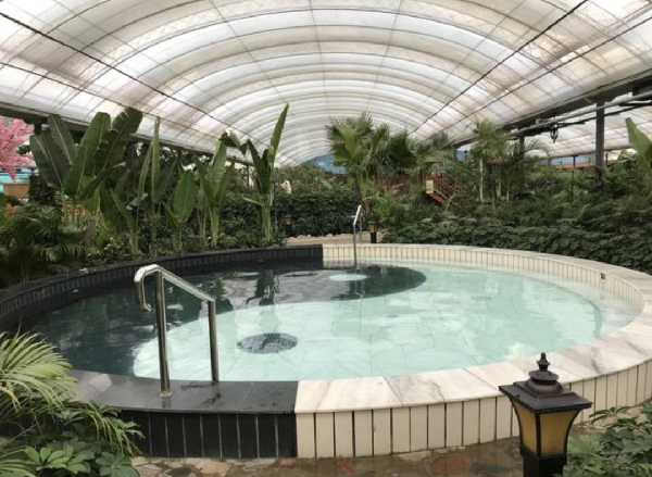 溫泉內各種功能性泡池,包涵游泳池,大型漂流河,按摩池,兒童戲水池等20余個,室外泡池3個,大型豪華游泳池,海南風情的綠色植物覆蓋的超級氧吧,空氣清新,香蕉樹,荔枝,芒果等等,水果樹科普展示,一年四季如畫,小橋流水,詩情畫意的浪漫生活品味,熱炕可同時容納200人。