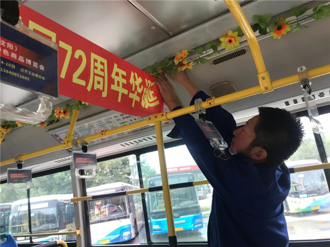 國(guó)慶節(jié)臨近,客運(yùn)集團(tuán)所屬各車隊(duì)積極裝扮公交車廂,為市民乘客營(yíng)造喜慶、祥和的節(jié)日氛圍。