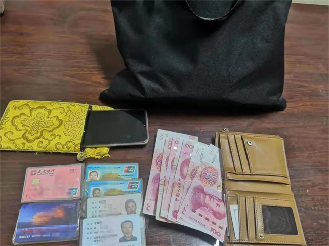 經(jīng)車隊(duì)核查,包里有手機(jī)一部,現(xiàn)金700多元,銀行卡,醫(yī)??▋蓮?,身份證兩張。正當(dāng)車隊(duì)愁著找不到失主時(shí),后車駕駛員馬建軍打來電話說有一位大娘的包落在車上了問有沒有駕駛員撿到,副隊(duì)長高興地回復(fù)說:“撿到了!”
