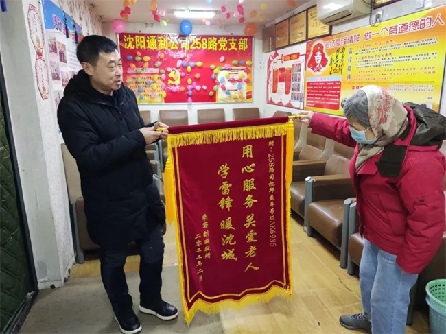 錦旗上寫的是“用心服務學雷鋒 關愛老人暖沈城”。