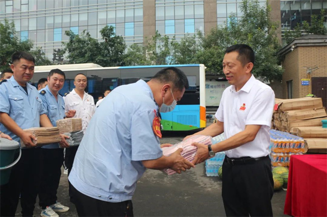 黨委書(shū)記、董事長(zhǎng)孟令軍代表集團(tuán)領(lǐng)導(dǎo)班子向所有在高溫下奮戰(zhàn)和堅(jiān)守的客運(yùn)一線職工表示感謝,并囑咐大家在為廣大市民提供服務(wù)的同時(shí),要做好自身防暑降溫,合理安排好調(diào)休時(shí)間,保證身體健康。要求各單位黨政工團(tuán)組織切實(shí)將關(guān)心關(guān)愛(ài)職工落到實(shí)處,擴(kuò)大活動(dòng)的覆蓋面,確保一線職工的身心健康,全力保障市民平安出行。