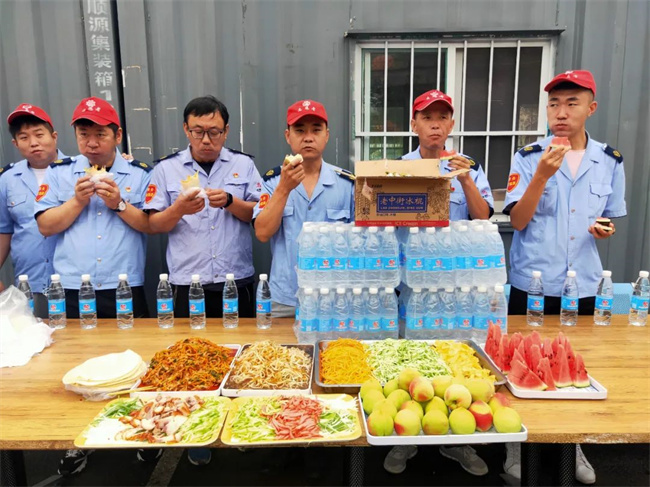 為了保障駕駛員在高溫天氣下,以飽滿的工作狀態(tài)更好的為廣大乘客服好務(wù),車隊(duì)密切關(guān)注駕駛員的精神狀態(tài)和身體健康情況,做好駕駛員生理心理健康監(jiān)測工作,加強(qiáng)對駕駛員心理健康的培訓(xùn)和疏導(dǎo)工作。同時,為了調(diào)動廣大駕駛員工作積極性,以更加飽滿的精神狀態(tài)為乘客提供文明規(guī)范的服務(wù),車隊(duì)從關(guān)心職工出發(fā),持續(xù)為職工“送清涼 ”、為職工提供礦泉水,西瓜、雪糕,鮮桃做好防暑降溫工作。值得一提的是,三伏第一天,211.222車隊(duì)還很應(yīng)景的為職工提供了“烙餅攤雞蛋”和豬頭肉、香腸、魚香肉絲、豆芽炒粉,卷菜等菜品,提高餐品質(zhì)量提升職工用餐滿意度。