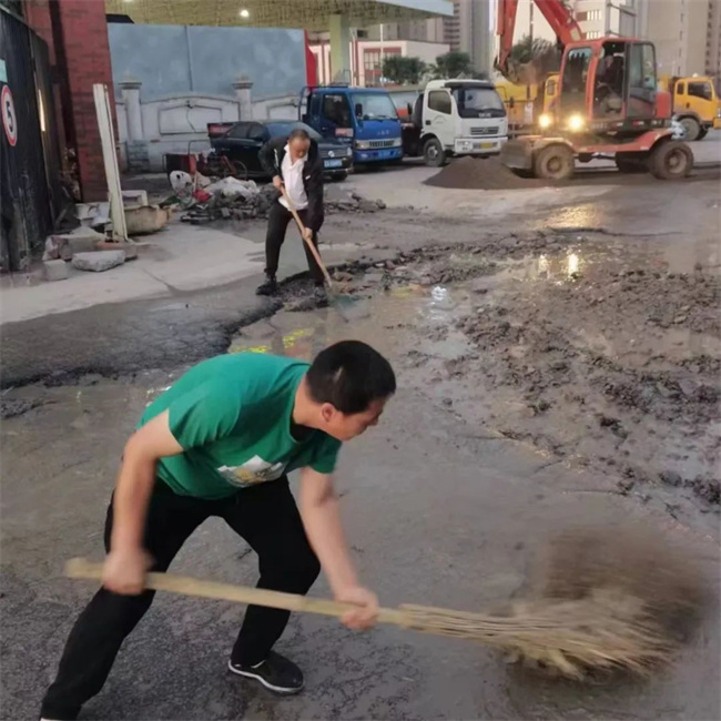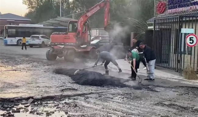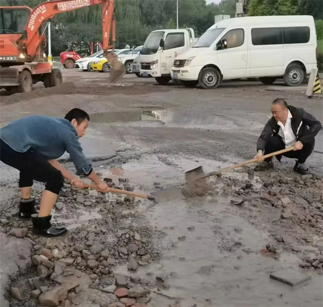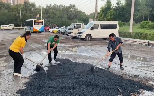 為盡快解決路面問(wèn)題,消除安全隱患,黃河公司在資金極度緊缺的情況下,本著辦法總比困難多的積極態(tài)度,通過(guò)聯(lián)系市政施工隊(duì)以進(jìn)場(chǎng)的方式來(lái)修復(fù)破損路面。