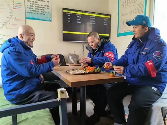 為了使車隊的兄弟姐妹能夠在工作崗位上感受到濃郁的節(jié)日氣氛,黃河公司所屬各車隊準(zhǔn)備了水果、瓜子、糖果等“年貨”,還有“元寶餃子”、“年年有魚”、“富貴雞祥”等一道道寓意美好的菜肴。大家一邊品嘗美食,一邊互相拜年問好,幸福的微笑掛在每個人的臉上。