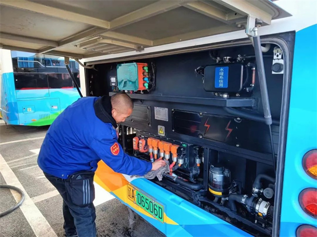 各車隊(duì)隊(duì)長(zhǎng)帶領(lǐng)駕駛員擦洗運(yùn)營(yíng)車輛,打掃車內(nèi)衛(wèi)生,駕駛員也自發(fā)加入其中,全力為乘客提供整潔舒適的乘車環(huán)境。