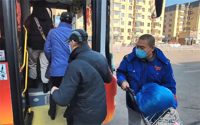 趙殿喜對(duì)老人說(shuō):“258路就到生日城,我這準(zhǔn)備發(fā)車了,大娘您坐我車吧!”