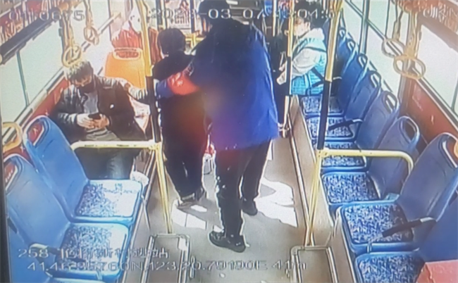 3月7日,賈清巖在艷粉新村始發(fā)站主動(dòng)幫助老人將購(gòu)物車抬上車,老人認(rèn)出了賈清巖,還沒(méi)等坐穩(wěn)就面帶笑容走向駕駛室向賈清巖表示誠(chéng)摯的感謝,賈清巖連忙起身攙扶老人回到座位。