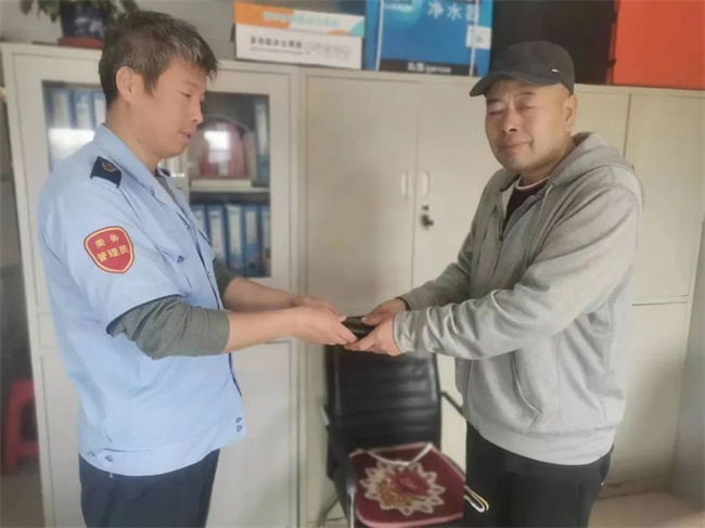 當(dāng)駕駛員翟曉東行駛到橫街車站后,失主楊先生已等候在車站,翟曉東確認(rèn)失主身份后便將手機(jī)還給了楊先生。
