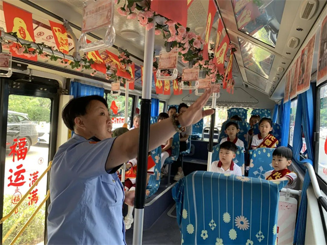 隨后,駕駛員賈清巖為孩子們上了一堂生動的公交安全乘車教育實踐課,并與孩子們積極互動,讓孩子們更多了解交通安全常識。