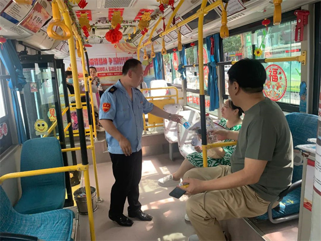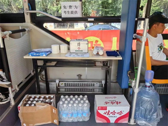 期間學(xué)生家長(zhǎng)在公交車(chē)上休息,王樹(shù)祥為大家準(zhǔn)備了水、急救物資、乘涼用品等,家長(zhǎng)們對(duì)車(chē)隊(duì)提供便利條件和溫馨的舉動(dòng)表示感謝。