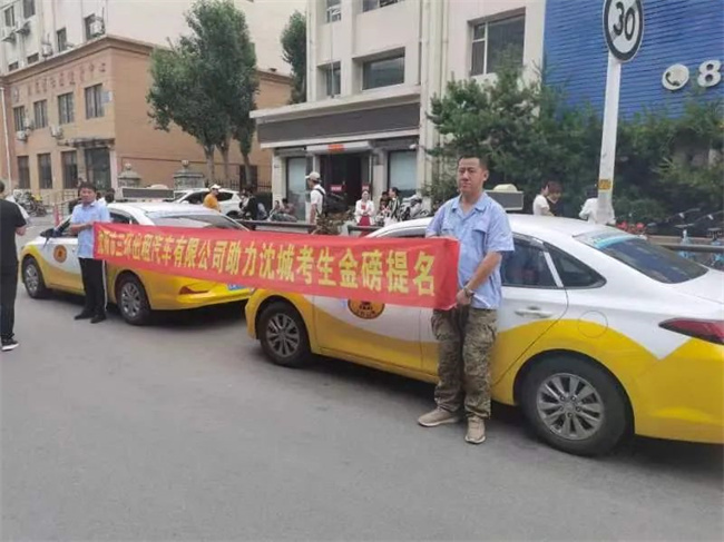 沈陽(yáng)出租汽車(chē)股份公司所屬三環(huán)出租汽車(chē)公司在高考期間開(kāi)展助力“愛(ài)心送考”活動(dòng)。高考期間,公司4臺(tái)模范出租車(chē)在107中學(xué)考點(diǎn)為考生及家長(zhǎng)提供免費(fèi)接送服務(wù)。