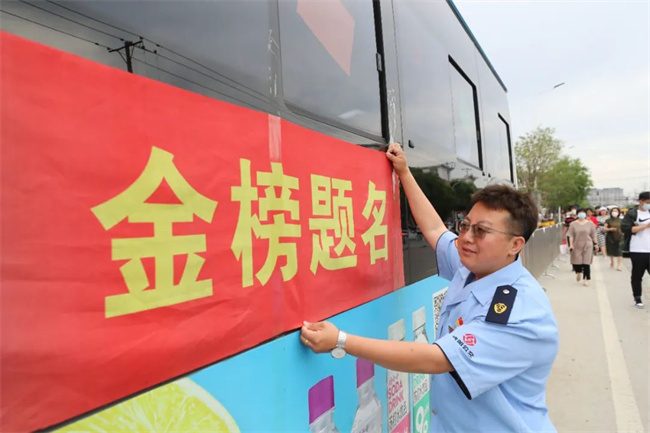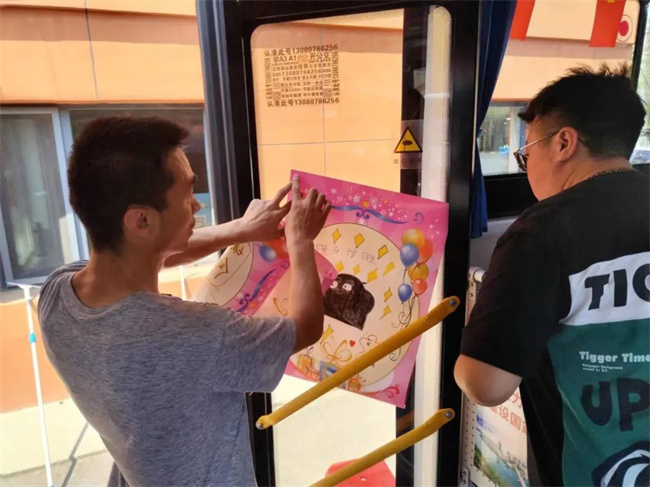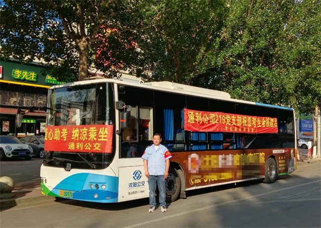 224路駕駛員王樹(shù)祥早早來(lái)到沈陽(yáng)建筑大學(xué)附屬中學(xué)校門(mén)前,掛起“224車(chē)隊(duì)祝高考考生金榜題名”的橫幅,為考生加油鼓勁。