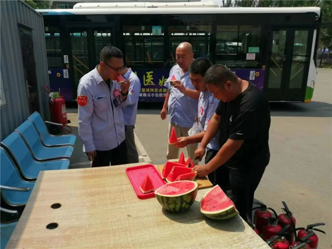 公司各車隊(duì)為駕駛員提供了冰鎮(zhèn)礦泉水、綠豆湯、西瓜等防暑降溫食物,保障一線駕駛員的休息質(zhì)量,確保駕駛員以最佳狀態(tài)投入到運(yùn)營生產(chǎn)工作中。