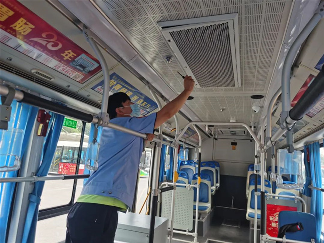 在209路公交場站,管理人員加大職工對車輛日常清潔工作的要求,并對運(yùn)營車輛逐一檢查,督促駕駛員堅(jiān)持每趟車運(yùn)營結(jié)束將車廂內(nèi)外衛(wèi)生打掃干凈,特別是空調(diào)濾網(wǎng)的清潔工作。