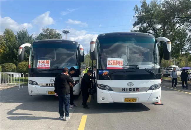 華龍公司開通公交旅游專線(沈陽北站至棋盤山景區(qū))和“沈水之陽 我心向往”秋韻情意濃“十一”旅游免費直通車線路(沈陽市府廣場至祝家小鎮(zhèn)),為游客提供安全、舒適、便捷的乘車體驗。