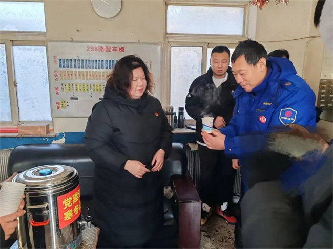 12月21日中午,和平社區(qū)的張主任帶領(lǐng)社區(qū)工作人員來到212.298路站務(wù)室開展“黨建連你我 寒冬送真情”活動,并準(zhǔn)備了一大桶熱乎乎的奶茶慰問在寒冬中奮戰(zhàn)在一線的駕駛員們。
