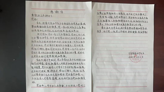 王卉珊的暖心善舉讓文官街道和平社區(qū)的書記深受感動,社區(qū)書記特地寫了一封感謝信,來到212路車隊(duì)親手交到王卉珊手中,向王卉珊表示最誠摯的謝意和崇高的敬意。