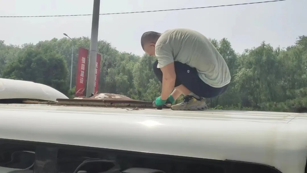 在檢查中,車隊發(fā)現(xiàn)部分車輛的天窗出現(xiàn)了漏雨現(xiàn)象,給乘客出行帶來了不便。為了讓市民擁有一個舒適安全的乘車環(huán)境,車隊機務隊長利用站停間隙,對漏雨車輛展開密封堵漏整改工作,并為每臺公交車更換了前風擋雨刷,以確保駕駛員在雨天擁有清晰的視野,安全駕駛。