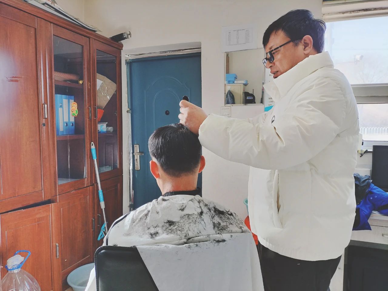 剛理完發(fā)的駕駛員王輝看著鏡子,臉上洋溢著滿意的笑容說(shuō)道:“平常工作忙得腳不沾地,根本抽不出時(shí)間去理發(fā)店,真沒(méi)想到在單位就能解決理發(fā)問(wèn)題,石維立的舉動(dòng)太貼心了!”