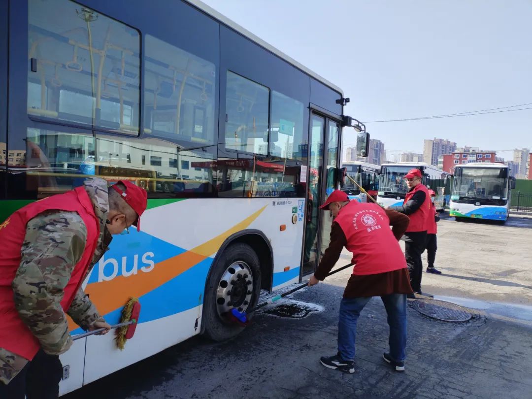 清潔環(huán)境,美化家園。部分黨支部組織黨員志愿者對(duì)公司所屬公交車輛、場(chǎng)站進(jìn)行徹底清潔。志愿者們手持掃帚、抹布等工具,認(rèn)真清掃車廂內(nèi)外,擦拭車窗座椅,清理場(chǎng)站垃圾,為乘客營(yíng)造干凈整潔的乘車環(huán)境。他們不怕臟、不怕累,用實(shí)際行動(dòng)詮釋了“奉獻(xiàn)、友愛(ài)、互助、進(jìn)步”的志愿精神。