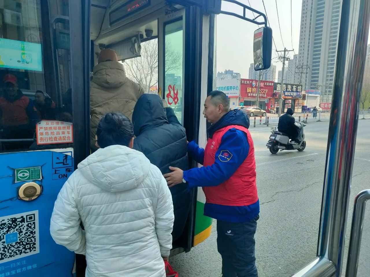 身披紅色綬帶的志愿者們熱情滿滿,為乘客提供咨詢引導(dǎo)服務(wù),耐心解答各類出行疑問(wèn),幫助公交站點(diǎn)進(jìn)行環(huán)境升級(jí)。