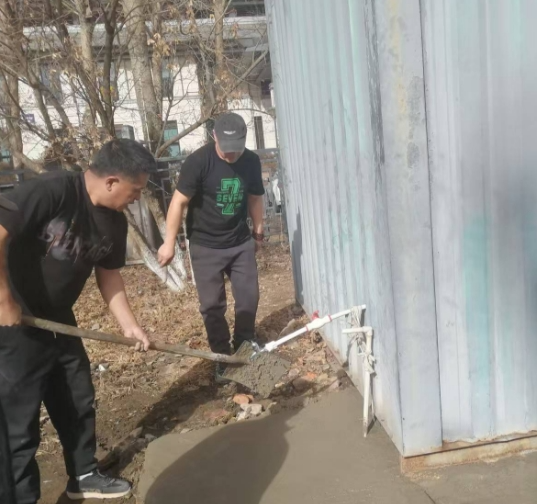 活動中,大家紛紛拿起工具,搬運沙子、水泥和磚頭,經(jīng)過兩個多小時的不懈努力,原本泥濘的地面得到了有效加固,場區(qū)環(huán)境得到了改善。