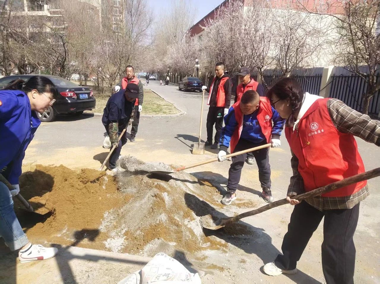 活動中,志愿者們對越冬垃圾、積存垃圾、衛(wèi)生死角等進行全面清理,為小區(qū)鋪設電動車停車位場地地磚。大家干勁十足,齊心協(xié)力,圓滿完成了工作,此次活動排除了安全隱患,凈化、美化、亮化了社區(qū)環(huán)境,得到了社區(qū)居民們的一致好評。