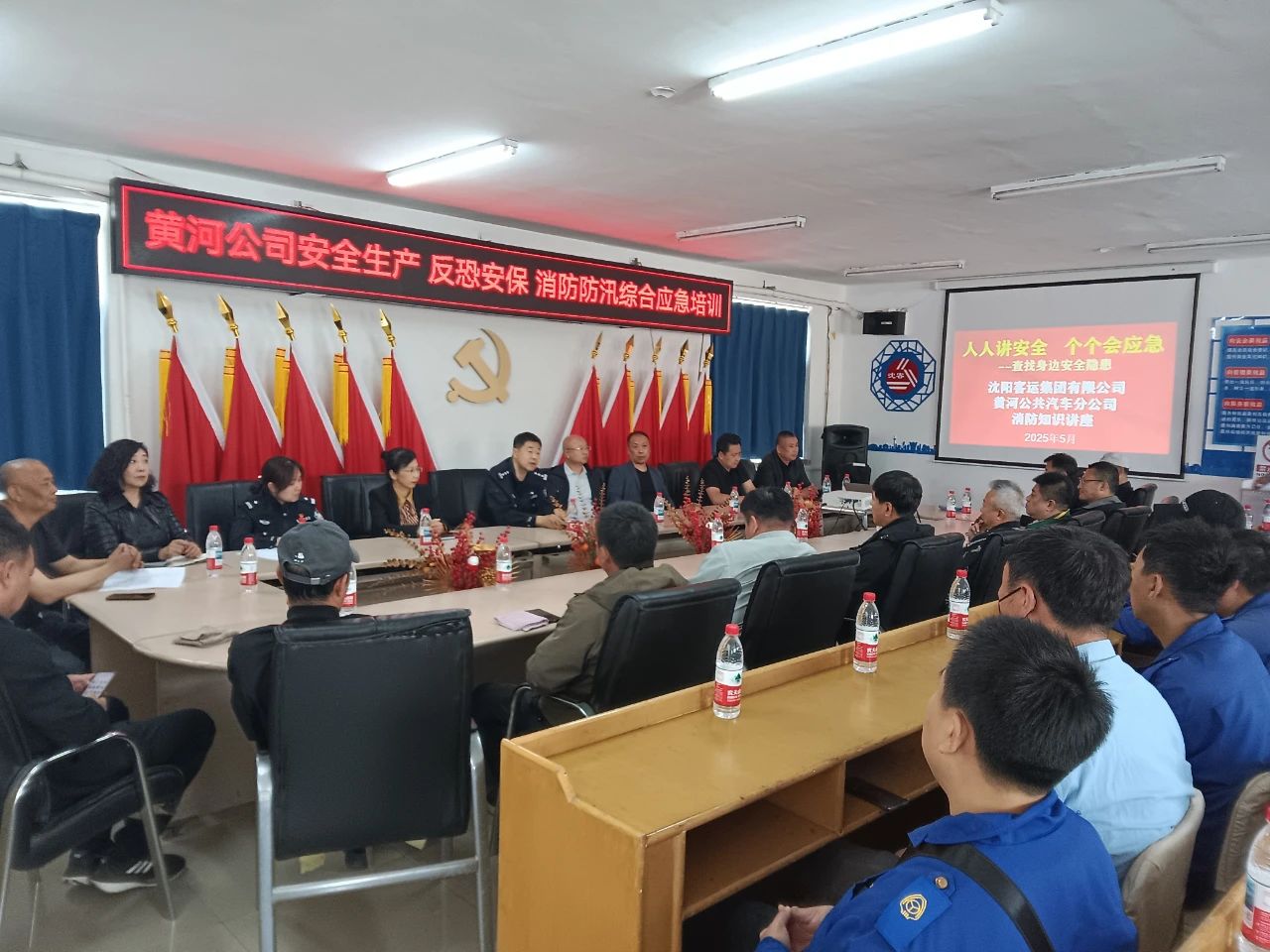 為提高職工的消防安全責(zé)任意識,進(jìn)一步加強(qiáng)安全生產(chǎn)、反恐安保、消防防汛等工作,5月8日下午,黃河公司與票務(wù)中心聯(lián)合開展安保反恐消防培訓(xùn)及應(yīng)急演練。公交軌道分局王兆民處長,沈陽民安消防咨詢服務(wù)中心王殿陽主任,集團(tuán)相關(guān)部門負(fù)責(zé)人,黃河公司負(fù)責(zé)人、相關(guān)部門負(fù)責(zé)人、各車隊隊長及駕駛員代表參加了本次培訓(xùn)。