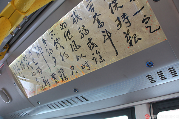 昨日,集團公司領(lǐng)導(dǎo)班子一同前往全運五路公交樞紐站,檢查全國首條“藝術(shù)公交”130路車身設(shè)計,該線路將成為我國首條“行走的藝術(shù)走廊”。 為給市民,乘客提供美觀、舒適、藝術(shù)氣息濃厚的乘車環(huán)境,集團公司與和平區(qū)文聯(lián)共同設(shè)計車身裝飾。首臺“藝術(shù)公交”車身外采用我市書法大家的書法作品,充分體現(xiàn)了城市獨有的文化底蘊。車廂內(nèi)看板展示了名家書法真跡,仿若置于翰林書院。書法作品以切實增強意識形態(tài)為目的,以宣傳貫徹十九大精神為主題。此外,車廂前端一側(cè)設(shè)有液晶顯示屏,播放各種藝術(shù)形式的短片。使得公交車融入了文化的內(nèi)涵,搖身一變成為了城市“流動的藝術(shù)展廳?!?/p>