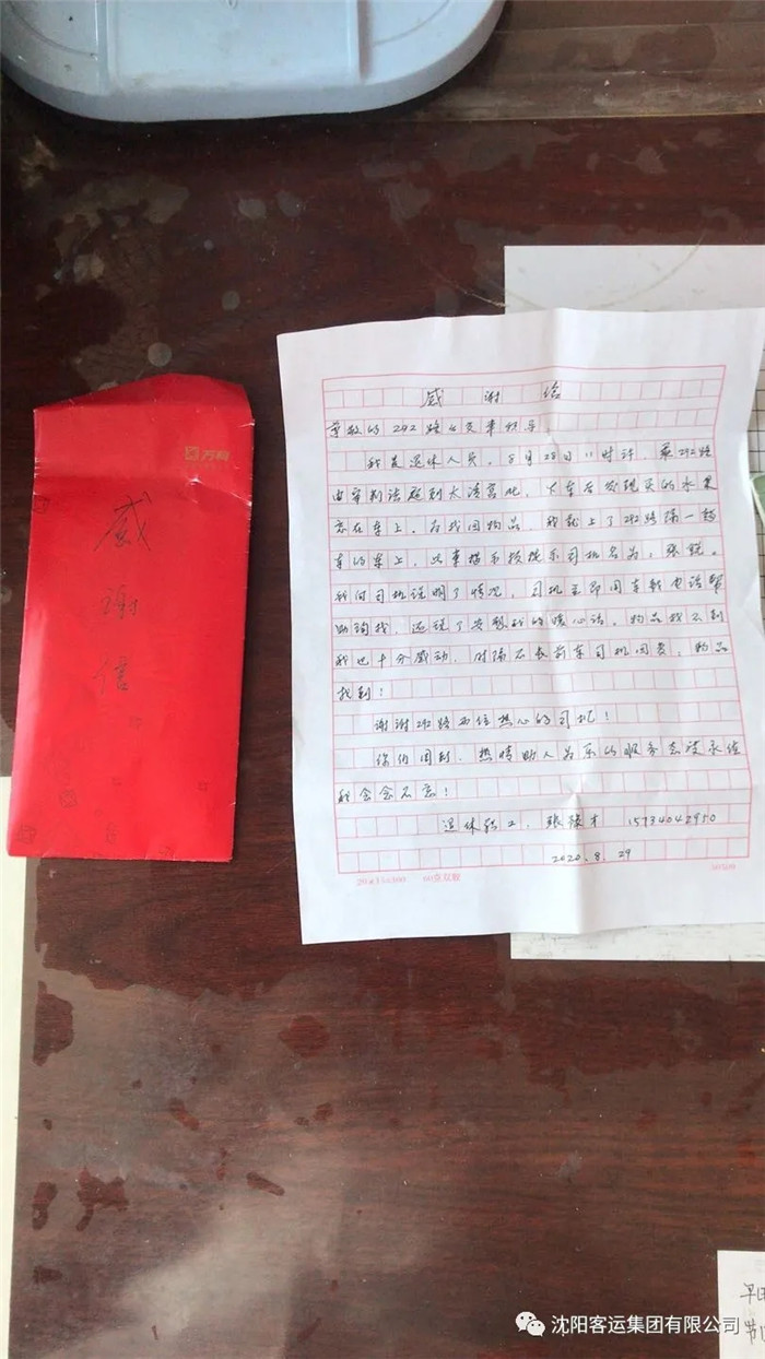深受感動(dòng)的老人第二天一大早就帶著一封感謝信來(lái)到了292車隊(duì),對(duì)駕駛員張銳在工作中的熱情和責(zé)任心表示贊揚(yáng)。