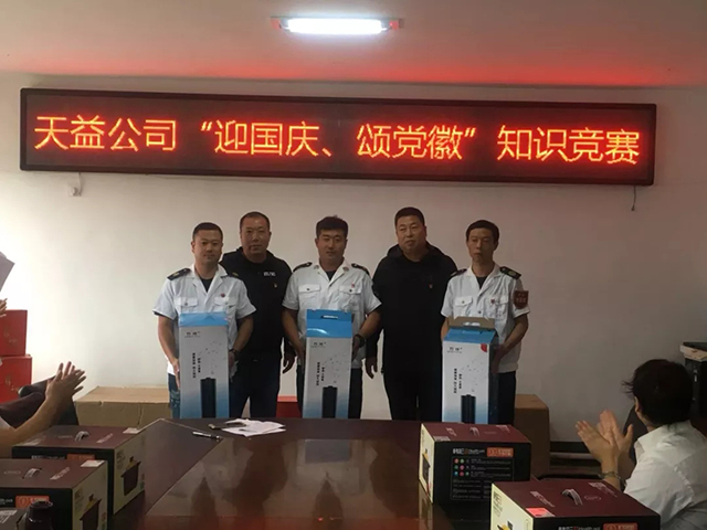近日,天益公司黨委在公司會議室舉行“迎國慶、頌黨徽”黨建知識競賽活動,來自公司所屬11個黨支部,共33人參加競賽;公司黨委副書記、紀(jì)委書記趙立東、副經(jīng)理丁峰同志、基層各黨支部書一同參加了本次比賽。