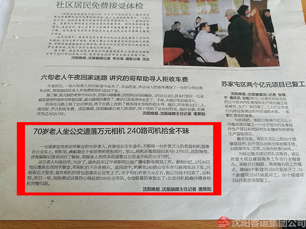 近日,一位古稀老人把價值近萬元的單反相機遺落在240路公交車上,幸運的是,被好心駕駛員楊峰及時發(fā)現(xiàn)并完璧歸趙。
