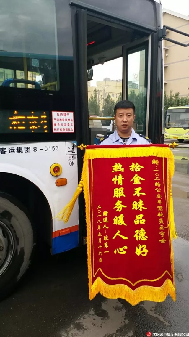 5月25日上午9點(diǎn),乘客耿東一親自拿著錦旗來到康利公司,表達(dá)自己的感激之情。原來在5月16日當(dāng)天,102路駕駛員王宇世在車上撿到了2萬元現(xiàn)金,但他并沒有將財物據(jù)為己有,而是選擇了積極尋找并最終將現(xiàn)金歸還失主。事后,遼寧衛(wèi)視、遼寧都市和遼沈晚報等多家媒體相繼報道了王宇世拾金不昧的先進(jìn)事跡。失主耿先生也曾想多次拿出現(xiàn)金給駕駛員王宇世,來表達(dá)自己的感激之情,但是都被王宇世婉言謝絕了。