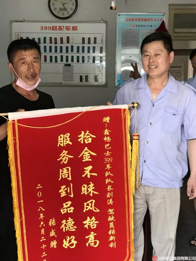原來(lái)乘客張先生乘坐399路公交車趕往沈陽(yáng)站時(shí),在車內(nèi)睡著了,不慎將錢包掉在了車廂的座椅縫隙中,在下車時(shí)候并未察覺(jué),到了車站才發(fā)現(xiàn)錢包丟失。張先生說(shuō)道:“幸虧第一時(shí)間車隊(duì)聯(lián)系到了他,不然損失了錢財(cái)不說(shuō),證件的補(bǔ)辦也是十分麻煩的?!钡诙欤丝蛷埾壬氐厮蛠?lái)了一面錦旗,張先生對(duì)駕駛員張新利的感激之情溢于言表。