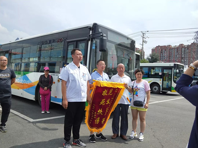 原來,老人今年67歲,由于天氣炎熱,坐公交車時出現(xiàn)腦供血不足導(dǎo)致抽搐暈厥。幸虧處置得當(dāng),才使老人轉(zhuǎn)危為安。已經(jīng)康復(fù)出院的老人對為自己伸出援手的駕駛員黃健充滿感激,親自帶著女兒王女士一起來到303路,將一面錦旗送到黃健手中,并聯(lián)系新聞媒體對黃健進行了采訪。采訪中,黃健的話語樸實無華:“公司和車隊的領(lǐng)導(dǎo)經(jīng)常教育我們,乘客坐了我們的車,我們就應(yīng)該把乘客照顧好,不管乘客發(fā)生什么意外,我們都應(yīng)該盡到一名公交司機應(yīng)盡的責(zé)任”。